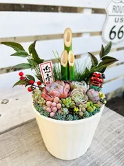 NEW 門松多肉🎍その1 ■作品内容多肉を使った門松です😊 ■工夫ポイント100均のアイテムを調和させてよりお正月っぽくしました🎍