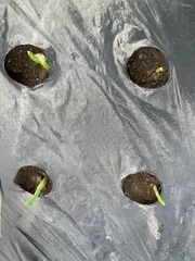 ニンニク発芽 ■育てた野菜・ニンニク(ホワイト六片) ■エピソード(チャレンジしたきっかけなど)ニンニクは毎年栽培をしています 温暖化の影響で 昨年からあえて遅植えにしています今年も50個~60個位植えてあります 種ニンニクは自家採取したものです😊 ※枝豆で使っていたマルチ
