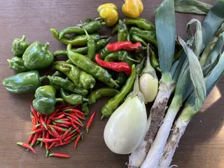 今朝の収穫 夏野菜のピーマン、パプリカ、とろーり旨なすは今期最後にしました 万願寺とうがらし、 唐辛子は もう少し頑張ってもらいます💪 今晩のお鍋にする為下仁田ネギも収穫しました~🍲