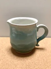 陶芸 蕎麦食器 蕎麦湯差し④ 蕎麦打ちも趣味になりまして 色々食器を作っています 蕎麦湯差しも作りました😊雲と空と山をイメージして釉薬を掛けてあります🗻