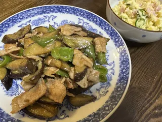 なすとピーマンの味噌炒め ■材料 なす ピーマン 豚薄切り肉 味噌砂糖 焼肉のたれ サラダ油 ■作り方 なすは縦半分に切り斜め切り、ピーマンは縦半分に切り適当な大きさに切り、豚肉も食べやすい大きさに切ります。フライパンにサラダ油を多めに入れなすを炒め、一旦取り出し、そこへ肉とピーマンを炒め火が通ったらなすを戻し
