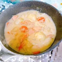 ホエーでサーモンシチュー 自家製モッツァレラチーズを作る際に出るホエーはタンパク質が豊富で、捨てるのがもったいないので、そのホエーを使って サーモンシチューを作った所、めちゃくちゃ美味しかったです🤩お鍋のまま撮っちゃいました😅コメントくださった皆さん、ありがとうございます💖少しずつお返事していくので、返事遅くなります🙇♀️