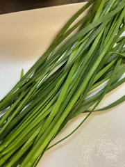 ニラ ■育てた野菜ニラ■エピソード(チャレンジしたきっかけなど)野菜炒めをするために暗闇でスマホのライトを照らしながら採ってきました♡雑草も混じってそう笑🤣春に蒔いた鶏糞のおかげで立派な葉になっています。