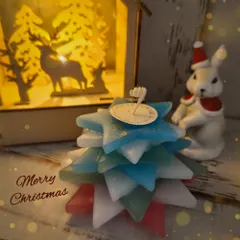 スター⭐️キャンドルのツリー🎄 ☆作品内容☆クリスマスマーケットのWSで作ったスターキャンドルのツリーが主役のディスプレイ✨️&画像加工 ☆工夫ポイント☆バックのオブジェからの光と、画像加工を使って、ツリーが幻想的に映るようにしました🎄✨️