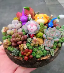 チョコエッグで多肉遊び🎵 ■作品内容チョコエッグのオマケのフィギュア(ピクミン)を使ってミニジオラマ風に寄植えしました ■工夫ポイント多肉の森?草原?を歩いてる風にバランスを考えて植えました 小さなカルタ星人が歩いてる風に見えるように赤い隊服が隠れないように気をつけました 小さなちまちま寄せた一