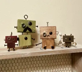 WS端材ロボット🤖 JC娘と端材ロボットのWSに参加しました🤖パーツがいろいろあって悩みますね😆工房では真ん中の緑と茶色のロボを作り、両脇のミニロボはおうちでパーツをつけて作成しました💚🤎可愛くていくつも作りたくなっちゃいます😁