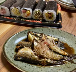 節分👹なので、イワシのしょうが煮 今日はダンナ様がお休みだったので、恵方巻きを買っといてもらいました😊ついでにイワシも買って来てもらったので、仕事後にしょうが煮だけ作りました🐟これで、鬼を追い払い無病息災に過ごせますね☺️