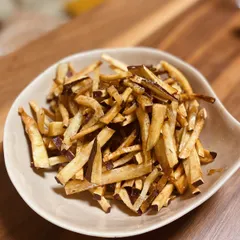 子ども達の大好きな大学芋🍠カリッとホクッとが魅力の大学芋ですが、カリカリ多めが好みなので、芋けんぴくらい細くしちゃいました🤗