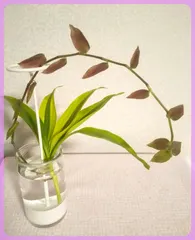 🌿昨年10月に植え付けたトラディスカンティアをカットし、水挿ししていましたが、だいぶ発根してきました。昨年10月本年3月🌿水挿し作業…7月7日・微粉ハイポネックスを入れています。・前日のサンデリアーナ水挿し時に取り除いた葉とフラポに挿してみました。7月7日…赤い部分をカット7月21日…だいぶ発根が進