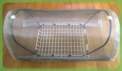 簡易多肉ハウス🌱 🌱ベランダのテーブルに多肉鉢を置くためのハウスを、家にある物で作りました。🔸雨風の強い日は、耐えられないので、家の中に避難するつもりです😅🔹幌があるので、ビニールですっぽり覆ったり、日除けネットを被せる事が出来ればと、思います。材料古くなった収納ラックのカゴ網戸を取り替えた時の余り針金粘着テープ栽培