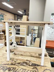 折りたたみ2段シェルフ·͜· ꕤ︎︎ 今日は久しぶりにマイストアでのWS🔨 絶対マイストアで作りたかったので頑張って予約しました笑⃝ 材料が多いのと苦手な蝶番付けが六ヶ所💦 アドバイザーさん方はあちらへこちらへと大忙し😵💫😵💫😵💫 ビス穴開けも多く垂木なので真っ直ぐ開けられないまるちゃんは曲