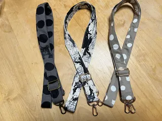 NEW ネックストラップ ■作品内容スマホ用のネックストラップです。小さ目のショルダーバッグにも使えます🍀*゜ ■こだわりポイントスマホ用にと作りましたが、小さ目のショルダーバッグにも使える様に接着芯を使いしっかり目に作りました。柄はやはり猫柄です😸