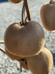 りんごみたい 今日は遅くなってしまいましたが、キイウフルーツの収穫をしました。  収穫中にりんごの形に似たキイウフルーツを見つけました。 二つ分なのかなぁ?