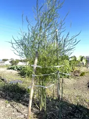 アスパラガス 久しぶりに畑へ初チャレンジのアスパラガス順調に胸の高さくらいまで成長してました!枯れてきたら刈り取るらしいのですがまだ青々してます どうなっていくのかな… あとは土を耕して来ました踏み固められてるのと粘土質なため耕運機で何往復もしてなかなか…💦充電が切れたところで終了です。もう1
