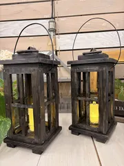 アンティーク調に仕上げるランタン風木製ケース アンティーク調に仕上げるランタン風木製ケース 今日の午後に2個目のランタンを作りました✨左手前のランタンが今日作ったもの🎶 1ヶ月前に作ったランタンとおんなじ物が欲しくて💓前回とは別店舗で予約取れたから1個目を持参で作成😊👍 同じように見えますか〜⁇😅 1ヶ月