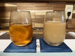 ■材料①米麹甘酒:125ml②キリン フォアローゼズ:50ml ■作り方①をグラスに入れてから②を入れてマドラーで混ぜる ■工夫ポイント☆健康面にも配慮しながら、お酒も楽しみたい♡と考えたのが、このレシピです♪☆この時季は体を冷やしたくないので、氷ナシにしていますが、氷アリでも氷