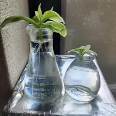 ベビーサンローズ お友だちに貰ったベビーサンローズ✨土への挿し芽では上手く増やせなかったので水耕栽培にしたらすぐに根が出てきて、根が出たら土へってしていたらたくさん増えてきました😊