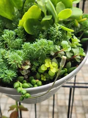 夏越した多肉‼️ リメイク缶に寄せ植えをした多肉✨今年の夏の暑さに何とかこれだけ耐えました‼️のびのびスカスカなので仕立て直ししないとです😊