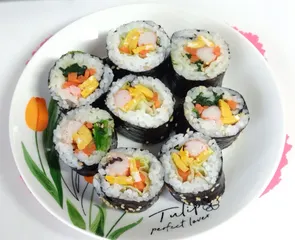 今日はキンパを作りました。具は家にあったカニカマ、玉子、人参、ほうれん草やレタス。次はツナや牛肉で作ってみようと思います😊