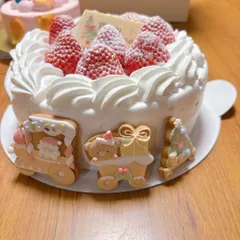 クリスマスケーキ 今年のクリスマスケーキはコストコケーキ🎂アイシングクッキーを飾ったらちょっと特別感が出たかなあ😆