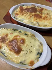 簡単グラタン ■材料ベーコン玉ねぎまいたけオリーブオイル牛乳小麦粉マカロニダシダ塩コショウとろけるチーズパセリ ■作り方1,平たい鍋かフライパンに火をつけないで、牛乳、小麦粉を入れて、小麦粉が溶けるまで混ぜておきます。2,玉ねぎは薄切り、ベーコンとまいたけは一口大に切り、1に投入。マカロニ、ダシダ(コン