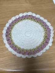 YouTube見ながらひたすら編んでチューリップ🌷のコースターを少し大きくして作りました☺️可愛いすぎる☺️編み物楽しいです✨