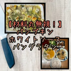 【半額南瓜で材料丸無視のパンプキン・ホワイトソースパングラタン🤣🙌🎃🉐🍞🐓🧀✨】 余りにも我が家の食材は日常的に閉店前のタイムセールでお買得GETやらかしとるんでぇ〜🤣🙌🌙👛🉐➰🛒✨最近遂に新規ハッシュタグで、「♯お買得品狩人倶楽部✨」(黄色マーカー部分のコピペして欲しい&リンクも付けとるんでご参加下さった方のご投稿にも飛べるよっ🙇♀️✏️💛&😁👍🔗🪽✨✨)ってなみなさんにも食