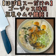 NEW 【ほぼ業スー食材だけのゴージャス時短豆乳キムチ饂飩🤣🙌🍜✨】 昨日は通院の超音波治療が混んでてスムーズに受けられず😂⏰🏥💦待ち時間も発生したのにその後お買い物に出掛けないと食材枯渇してて大ピンチだったのよぉ〜🤣🙌‼️💨💦お米炊く暇も惜しいから、業スーの直ぐ火が通る冷凍讃岐うどん使った豆乳キムチ饂飩に決定〜っ😆💪🫘🥛🌶️🍜✨■材料&作り方(以下黄色マーカー部分が