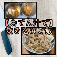 【おでん汁リメイク①大量蒟蒻加えて炊き込みご飯っ🤣🙌⬜️🌾🍢🍲✨】