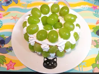 シャインマスカットを贅沢に使って💚 立派なシャインマスカットを4房もらったので、贅沢に1房を使ってシフォンケーキを作りました❣️やっぱり美味しい😋