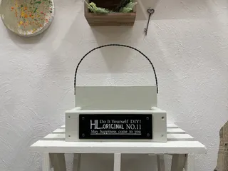 HL.11 ねじねじワイヤープランター 以前作った「HL.5 ダメージ加工BOX」と兄弟👬みたいなので、同じ色にしました!アクリル板へのステンシルはクリアでとてもきれい🙌