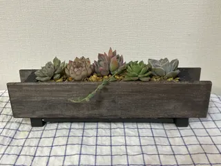 😉100均のスノコで箱を作ってそこに穴を開けて、多肉さんを並べて植えてみました🌱
