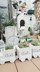 奥行きのあるスペース 元々フラットなウッドデッキでしたが、スチロール製の鉢をメインに、レンガを使って高さを出したり、植物を置く配置などで奥行きを出して飾って、ヨーロッパをイメージした空間にしてみました。涼しくなってきたので、多肉植物も元気になってきました。