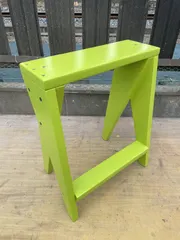 図工イス、塗装メンテ ↑after↓before2022年3月に作った図工イス、塗装メンテは今回が初めてでした。今までは物置き内使用が基本でしたが、今回の塗装メンテで室内使用するように整えました。↓解体した様子です。↓全体的にサンダー掛け後、脚部底面がかなり傷んでたので、5㍉程カットしました。↓一番気になったのが、脚部分
