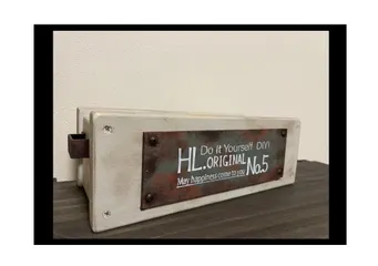HL.5 ダメージ加工 遅れて投稿しました!プレートは木材ですが、アイアンペイントのゴールド、シルバー、グリーンから選べて、これはグリーンがベースです。それから錆加工用のブラウン系2色を駆使してそれ風に…左右の金具にも錆塗装したので結構雰囲気出てます!