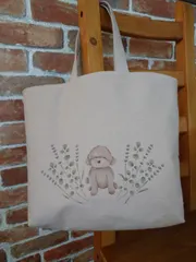 トイプーのトートバッグ ハンドメイドのトートバッグに、トイプーのステンシルをしました優しい雰囲気になるように、トイプーちゃんの顔が笑顔に見えるように目を描きました