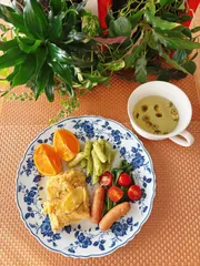 モーニングに野菜蒸し ■育てた野菜パプリカ、薩摩 ■エピソード(チャレンジしたきっかけなど)パプリカは落花生と共にコンパニオンプランツとして楽しそうなので育て薩摩は親戚のうちで苗植えさせていただきました 韓国ではやっていた蒸籠の蒸しパンが気になり朝から蒸籠でパンも野菜を蒸しました🤗パン🍞、カボチャ、薩