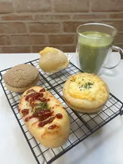 いろんなパンが食べたいと…😥 万能生地で試してみました。ウインナーパンたまごサラダ玄米粉入りメロンパンクリームパン 成型まで前日夜にして二次発酵冷蔵庫で朝焼きました クッキー生地はストックしていたもの使用カスタードクリームは、前日の残り 300gでこれだけ焼け