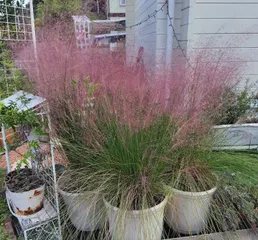 ピンクミューリー(ミューレンベルギア カピラリス) 秋を感じさせてくれるグラス、ピンクミューリーピンクの細い穂が風になびいて綺麗です。 夕日に当たると輝いて、また美しいんです。株が大きくなったので、株分けしたいと思っています。