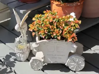 ファニードレスという名前がよく似合う、かわいい色合いのアルテルナンテラ💕お気に入りのかわいい鉢に植えてみました😄