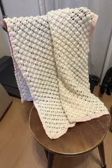 ブランケット オールシーズン活用できそうなブランケットを余り糸を使って編みました。無心でのんびり編みすすめた作品です☺️自分用として作ったので所々いい加減だったりしますが愛着が湧く作品になりました。きれいに保存しておき、将来の孫へのおくるみなどに使用できたらいいなぁと考えたりしています☺️