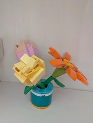 100均で買ったブロック(フラワー)を作ってみたら思いのほか可愛いかったです。対象年齢6歳以上と書いてありましたが、6歳で1人で作るには、ちょっと難しいかも🤔 🐰🐰さびうさ🐰🐰