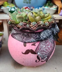 リメイク鉢 気分転換にボチボチ作っていたリメイク鉢が完成🩷かなり乙女チックな仕上がりになったな〜。
