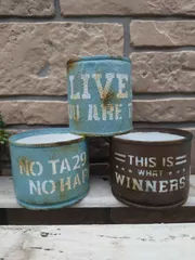 🖌️リメイク鉢&リメイク缶💕 来月ちょっと規模の大きな寄せ植え教室を開催します😆コツコツ準備中✨お好きな鉢を選んでいただきたいので色んなバージョンのを作っておこうと考えてまだまだ製作中です🎵