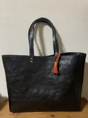 レザーバッグ完成! やっとレザーバッグ完成!皮が厚くて縫うがの大変でした😅ワンポイントに端皮でタッセルを作ってつけました😊