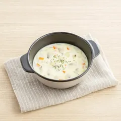 クラムチャウダー こちらのレシピは【レンジで楽チンカレーポット大、小】を使用しています。※10月上旬より順次販売開始いたします 【材料・分量】1人分材料分量あさり(砂抜き済み)100g白ワイン大さじ2じゃがいも1/2個(70g程度)玉ねぎ1/4個(50g程度)にんじん1/5本(3