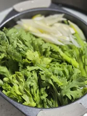 1人前の春菊鍋🍲 レンジで楽チン 蒸し&グリルプレート 深型で春菊鍋🍲■材料【1人分】春菊1束長ネギ1本【合わせ出汁】酒大さじ1みりん大さじ1塩小さじ1/4しょうゆ大さじ1/2和風顆粒だし小さじ1/2水300cc■調理時間600W  10分■作り方材料を入れて600Wで10分ほどレンジにかける。■作ってみた
