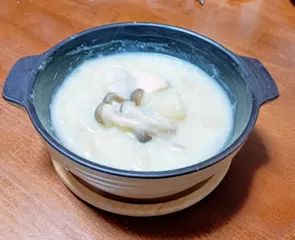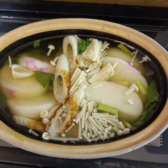 NEW お雑煮 ■材料お餅2個小松菜適量きのこ適量ちくわ1本白だし80cc(調味料:水=1:3のものを使用)水240cc ■調理時間約10分600wで2分ずつタイマーをかけ、様子を見ながらレンジ時間は6分程度 ■作り方器に3㎝に切った小松菜を敷き、食べやすい大きさに切った餅を並べるきのこ(椎茸が