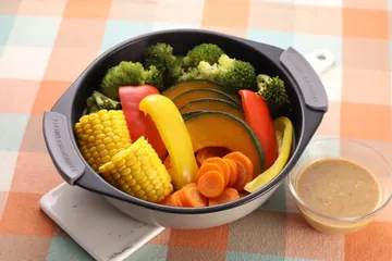蒸し野菜コンボ【レンジで楽チン蒸し&グリルプレート深型】 蒸し野菜コンボ こちらのレシピは【レンジで楽チン蒸し&グリルプレート深型】を使用しています。 【材料・分量】2人分材料分量ブロッコリー1/2株(100g)カリフラワー1/4株(120g)にんじん1/3本(50g)赤パプリカ1/4個(40g)黄パプリカ1/4個(40g)かぼちゃ1/