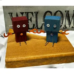 ちいちゃいロボットくん♪ ロムツヨシさんのかわいいロボットくんに、刺激を受けて、端材をノコギリ🪚で、ギコギコ切り、小さいロボットくんを作りました😊♪ 先日、WS終わってから、アドバイザーさんにヒューズの在り処をお伺いし、無事にゲット 短いので、2本使うようかと思ったのですが、ロボッ